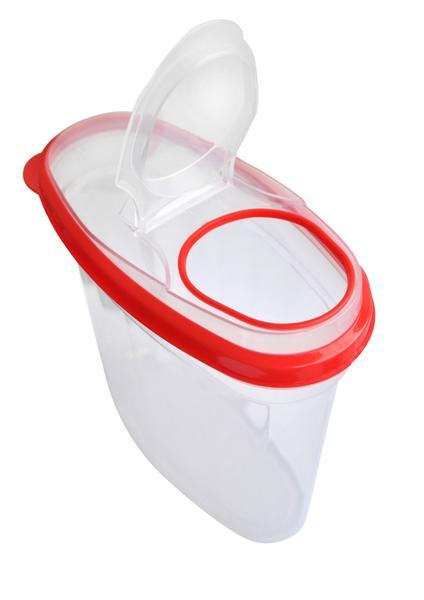 Sada 3 ks praktických plastových dóz na skladování potravin s červeným víčkem. Dózy jsou vhodné do každé domácnosti. Set obsahuje dózy o objemu 5,4 l, 2,95 l a 1,37 l.