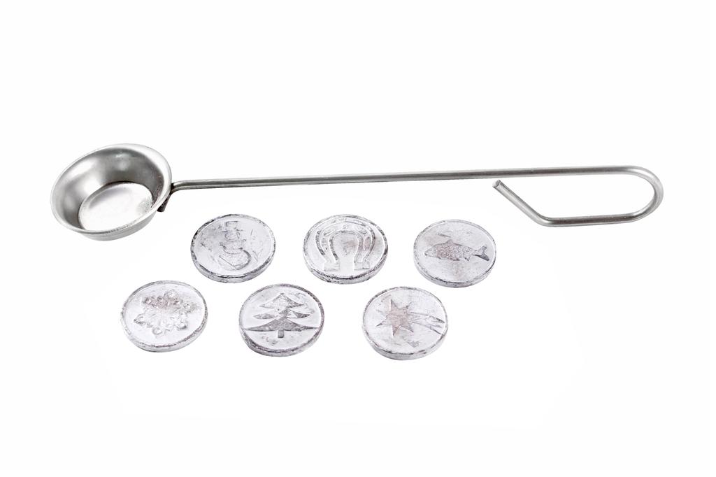 Odlévání olova je tradiční český vánoční zvyk, kdy nad plamenem v kovové pánvičce roztavíte minci a velice opatrně vlejete do nádoby se studenou vodou. Tím vzniknou různé tvary, které představují co dotyčného v příštím roce čeká - nápovědou Vám bude přiložený návod s významem symbolů. Sada obsahuje pánvičku a 6 ks olověných mincí.