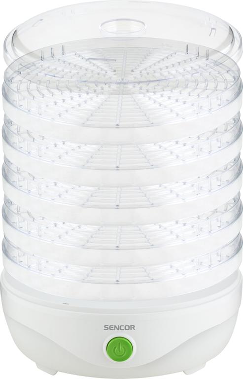 Sušička potravin Sencor v bílém provedení skvěle zapadné do každé kuchyně. Sušička je vybavena pěti platy na sušení, na kterých lze usušit v podstatě cokoli. Sušit ale můžete i s jedním sítem a ušetříte tím mnoho prostoru. Sušička potravin vhodná k přípravě například: sušeného ovoce (křížal, švestek, meruněk, banánů atp.), rozinek, sušené zeleniny do polévek, sušených rajčat, sušených bylinek, bylinkových čajů (máta, lipový květ, heřmánek atp.), sušených hub do polévek a pokrmů, sušených pomerančů na dekorace, sušených dýňových semínek, sušeného masa, sušených ryb Díky integrovanému ventilátoru se usuší všechny potraviny rovnoměrně.