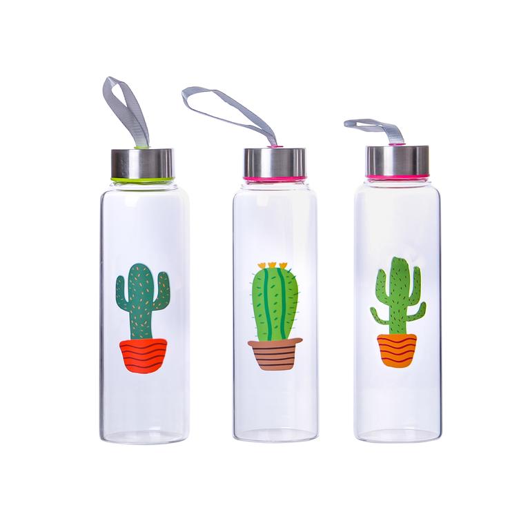 Skleněná láhev s víčkem TORO 390ml Kaktus MIX motivů