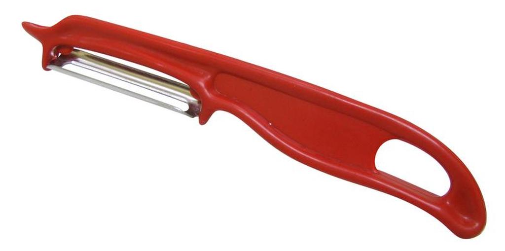 Škrabka na brambory s pohyblivou čepelí usnadňuje loupání brambor. Neabsorbuje aroma, chutě ani barvy pokrmů. Plastová rukojeť je uzpůsobena pro pověšení na závěsnou tyč. Barva červená, stříbrná. Materiál - plast, nerez. Rozměry - 2 x 14 cm.