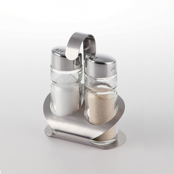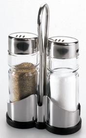 Slánka a pepřenka z čirého skla v nerezovém stojánku 8, 9 cm, opatřené úchytem pro přenášení. Dochucovací souprava má dokonalý design, snadná údržba, vhodná do myčky na nádobí, dodáváme v pěkném dárkovém balení. Rozměry - 3 x 8,9 cm.