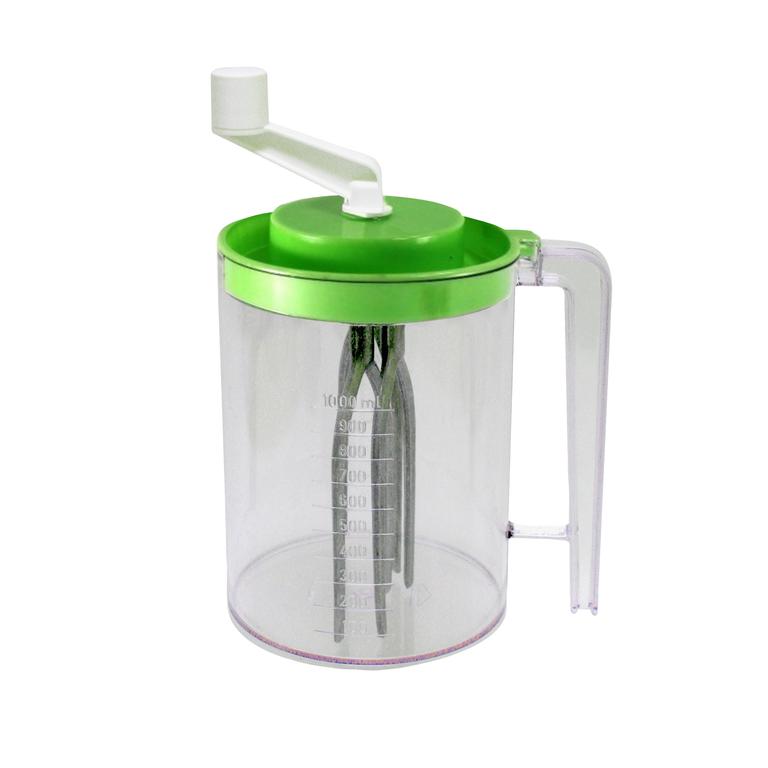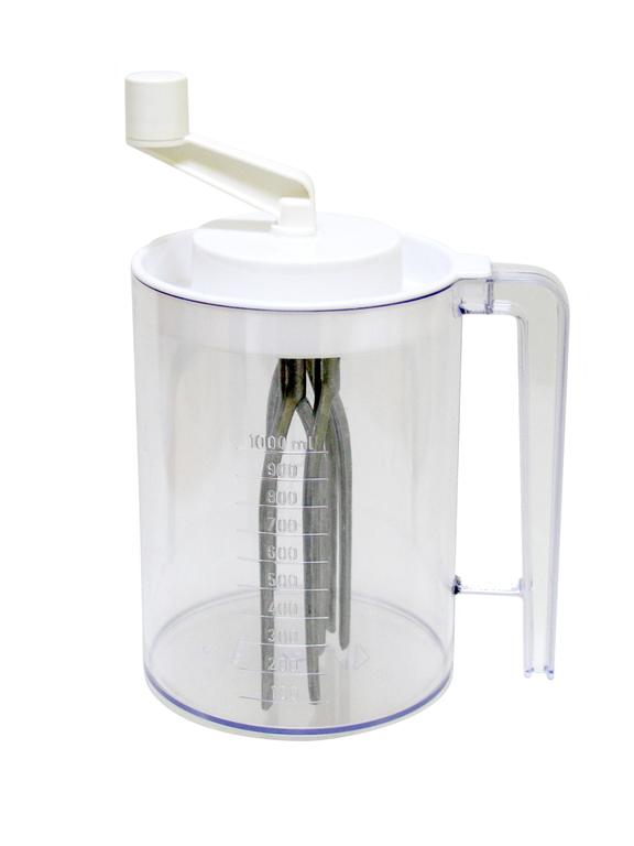 Ruční šlehač je vhodný na vyšlehání různých potravin např.: těsta, smetany apod. Je snadně použitelný bez elektřiny. Rukojeť padne krásně do ruky a umožňuje snadné uchopení šlehače. Materiál - aluminiové metly, plast. Objem šlehače je 1 l. Rozměry - 11,5 x 15,5 cm, barevné provedení - bílá, modrá a zelená.
