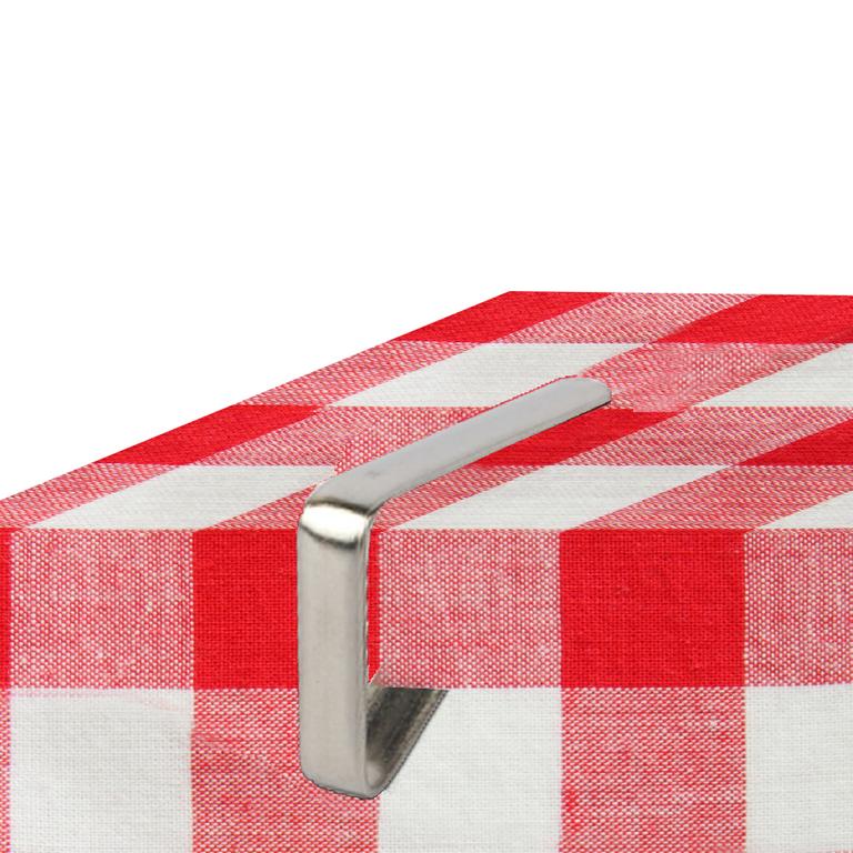 Spona uchycuje ubrus ke stolu. Zabráníte tak odfouknutí při silném větru. Tyto krásné spony z oceli se stanou ozdobou Vašeho stolu, navíc díky vylepšené konstrukci perfektně drží. Sada obsahuje 4 ks. Rozměry - 5,5 x 4,5 cm.