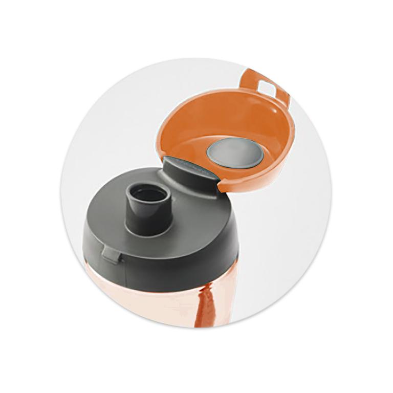 Sportovní láhev, skvěle padne do ruky. Je vyrobená z nové slitiny pryskyřice zvané Tritan. Tento materiál se vyznačuje vysokou průhledností, odolností, a samozřejmě zdravotní nezávadností. Odklápěcí víčko se silikonovým těsněním izoluje od okolních nečistot a bakterií. Součástí láhve je praktické poutko. Nápoje v láhvi lze chladit v ledničce. Vhodná do myčky. Objem 550 ml. Rozměry 7,5 x 20,5 cm. Barva růžová