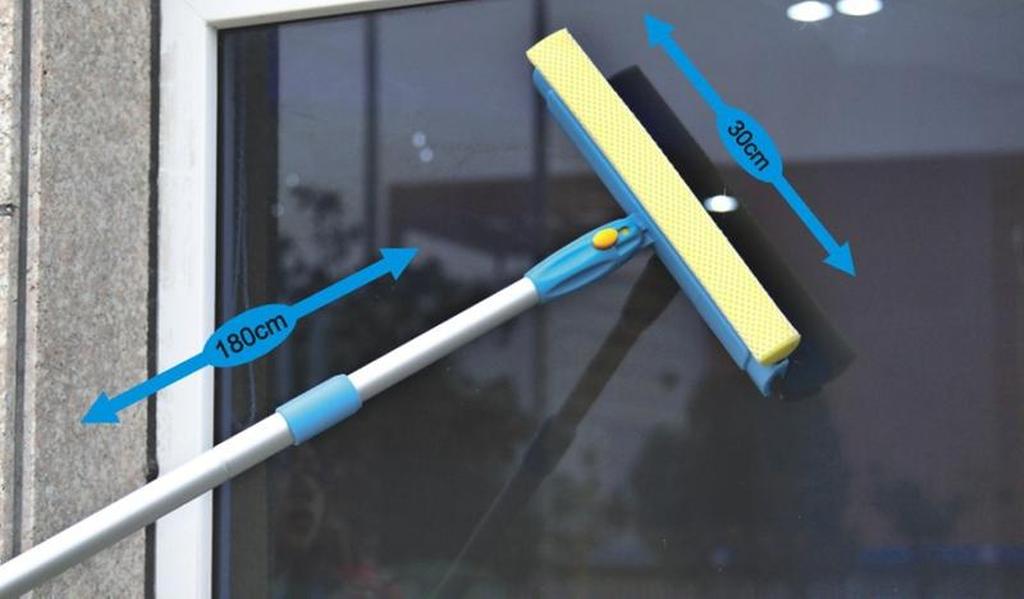 Stěrka na okno je dnes velkým zjednodušením pro hospodyňky při mytí oken. Stěrka na okno je však také vhodná pro profesionální využití. Výhodou této stěrky je hliníková teleskopická tyč s molitanovým úchytem pro příjemné držení. Samotná stěrka je pak vyrobena z gumy zasazené v hliníkovém profilu pro přesnější stírání. Součástí stěrky je také mikrovláknový hadr, který dokonale čistí nečistoty. Vše je velmi jednoduché pro použití z pouhého stoje ze země.Rozměry - 30 x 8,7 x 180 cm. Barva modrá, bílá, stříbrná, žlutá, černá.