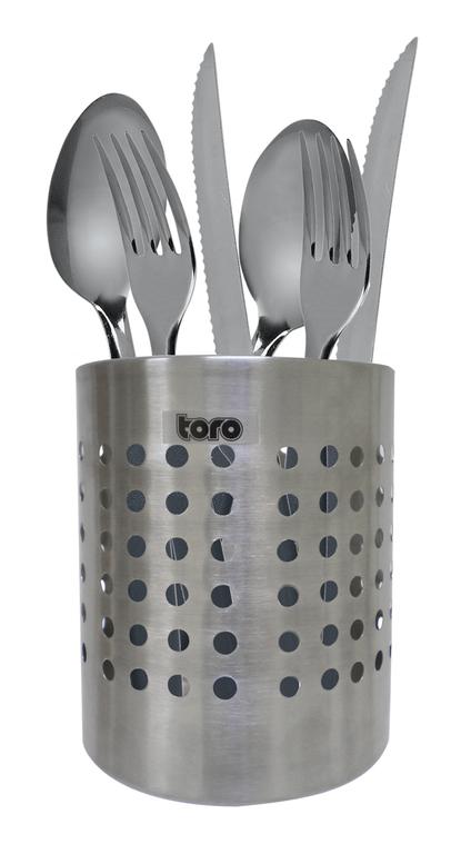 Stojan a zároveň odkapávač na příbory má moderní design a nerezový povrch. Stojan je vhodný pro ukládání příborů- s otvory 0,5 cm po obvodě i dně .Pokud použijete stojan i při stolování, budete mít příbory vždy po ruce. Rozměry - 12 x 14,5 cm