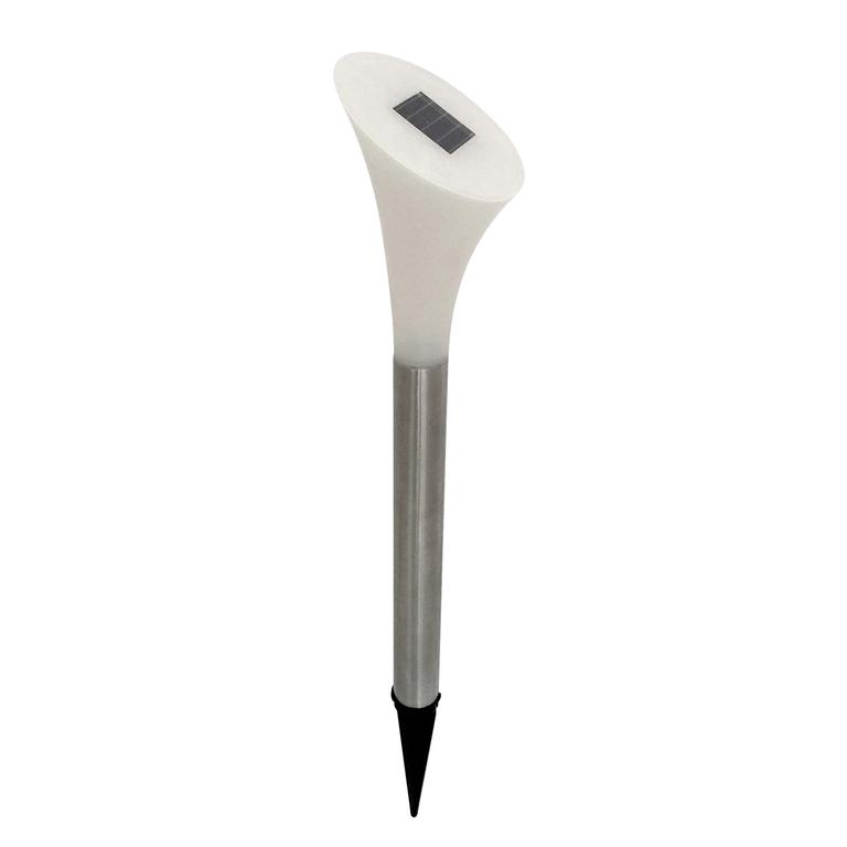Zahradní plastová solární led svítilna ve tvaru květiny- kaly. Solární panel proměňuje sluneční světlo v elektrickou energii a shromažďuje ji během dne. Světelný senzor spouští světlo automaticky v noci. Světelným zdrojem je jasná LED žárovka s vysokou světelnou intenzitou po dobu až 8 hodin, při úplném nabití během dne. Součástí balení je 1 ks knoflíkové baterie 1.2V 40 mAh. Materiál plast, rozměry 7 x 38 cm. Assort barev.