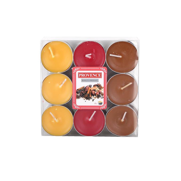 Jednoduchý zdroj světla, který navodí ve Vašem domově příjemnou atmosféru. Čajová svíčka je zároveň vhodná na vytváření vánočních, velikonočních, ale i jiných arengema. Nezapomeňte prosím dbát na bezpečnost a držte se na svíčce uvedených bezpečnostních piktogramů. Vůně sladké koření. Sada 18 ks.Doba hoření: cca 4 hodiny.