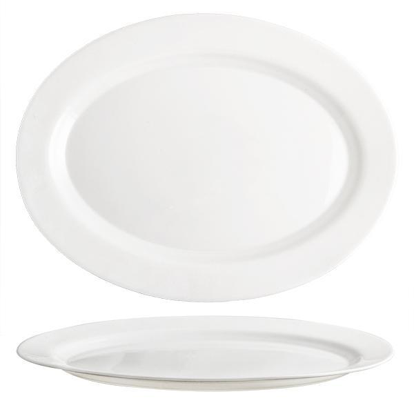 Jídelní oválný talíř "Elba" je krásný moderní talíř vyroben z opálového skla. Opálové sklo je tvrzené sklo, nahrazuje porcelán a je těžko rozbitné, velice oblíbené. Šířka talíře je 36 cm. Barva bílá.