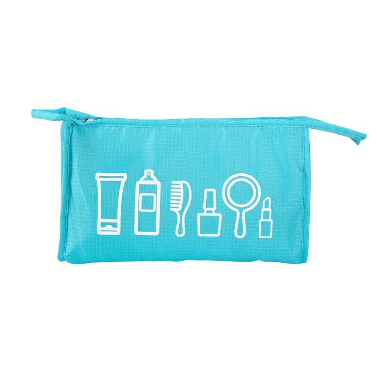Taštička na kosmetické potřeby je skvělým pomocníkem při cestování. Využijete ji na dovolené nebo na služebních cestách. Taštička je na zip a má 4 praktické kapsy. Materiál - 100 % polyester. Rozměry - 30 x 6 x 18 cm. Barva - modrá.