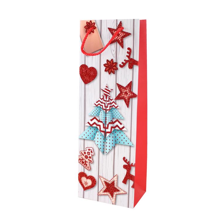 Dárková papírová taška na víno s vánočními motivy. Rozměry - 36 x 12,5 x 8,5 cm, assort různých vánočních motivů.