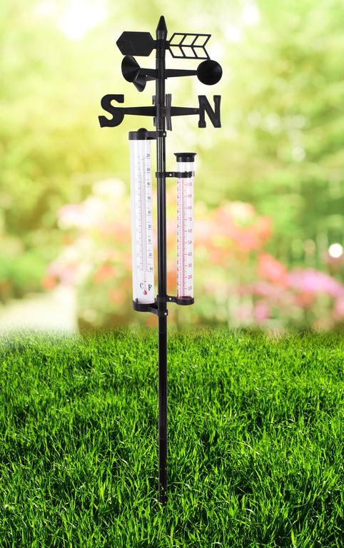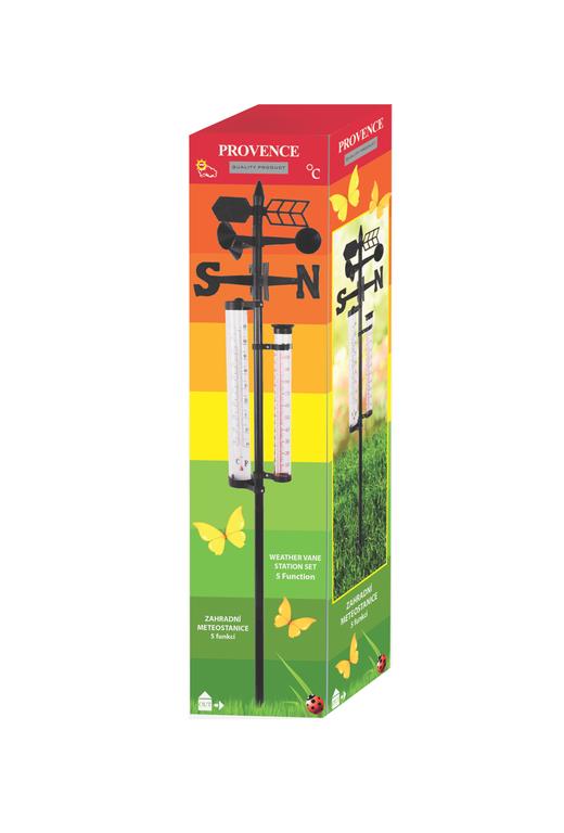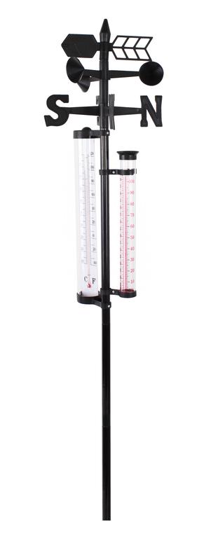 Venkovní zapichovací meteostanice - 5 funkci, - 40 - +50°C, velikost 145 cm. Funkce: meření teploty ve °C a F (- 40 - +50°C), srážkoměr - měření srážek v mm do 100 mm a v INCH (palce do 4.00), ukazatel síly větru, ukazatel světových stran, ukaztatel směru větru.