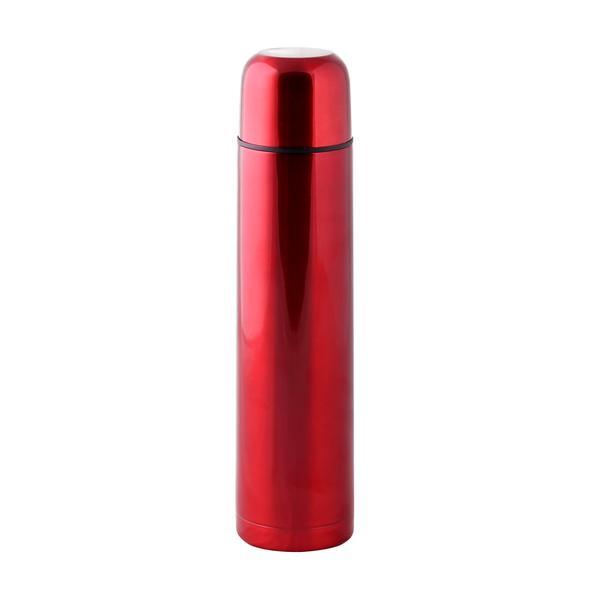 Nerezová termoska o objemu 1 l. Je vhodná na studené i teplé nápoje. Termoska má praktické víčko, které lze použít jako hrníček. Materiál - nerez, plast. Barva červená. Rozměry - 8 x 33 cm.