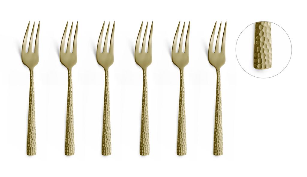 Dezertní vidličky AMEFA Felicity skvěle doplní sady příborů. Jsou vyrobeny z nerezové oceli, v balení 6 kusů, barva champagne.