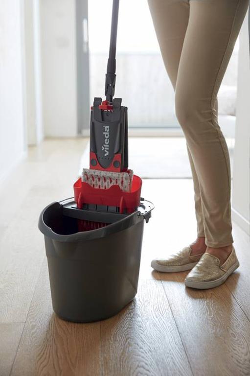 Umožňuje vyždímat mop efektivněji, takže je vhodný pro všechny typy tvrdých povrchů: PVC, plovoucí podlahy, parkety, dlažba.