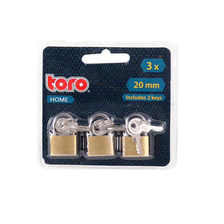 Sada 3 ks visacích zámků 20 mm. Mosazné tělo zámku a oblouk z oceli pro lepší odolnost proti prořezání. Zámky jsou vhodné k uzamykání Vašich zavazadel, skříní, vitrín apod. U každého zámku jsou 2 klíče.
