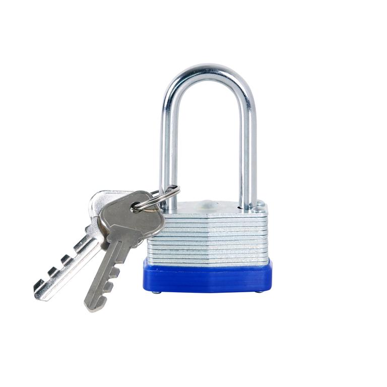 Visací zámek dlouhý, šířka 40 mm. Zámek je kovový, vhodný na uzamykání skříněk, sklepů, vrat apod. Balení obsahuje 2 ks klíčů. Oblouk z tvrzené oceli pro lepší odolnost proti prořezání. Barva stříbrná.