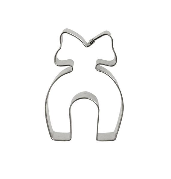 Vykrajovátko - tvar podkůvka s mašlí je vyrobeno z pocínovaného potravinářského plechu. Vhodné na cukroví, perníčky, potahové nebo modelovací hmoty. Vykrajovátka jsou od českého výrobce a splňují všechny předepsané normy. Rozměry - 4,3 x 6,1 cm.