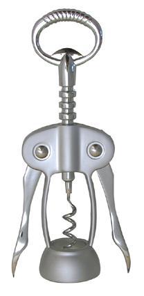 Vývrtka s křidélky vyrobena z nerez oceli 18/8, nasadí se na hrdlo láhve a šroubovacím pohybem navrtáte korkovou zátku, tím se křidélka posunou nahoru, poté zatlačíte křidélka směrem dolů k láhvi a zátka Vám vyjede ven na vrtáku vývrtky. Velkou výhodou výrobku je snadná a bezpečná manipulace. Rozměry - 17,4 x 6,7 cm.