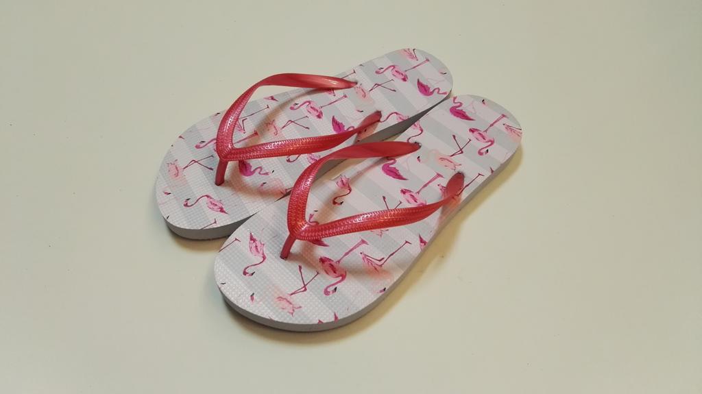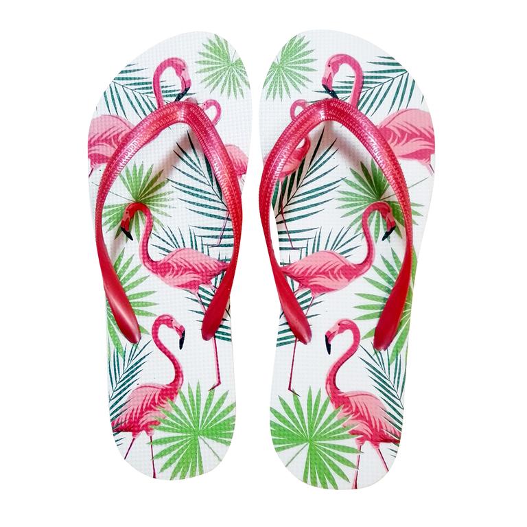 Dámské žabky s velice oblíbeným motivem "Plameňáci". Žabky jsou pohodlná obuv pro horké letní dny, k vodě, ale i na běžné nošení. Velikost EU 38. Délka 25,3 cm. Assort barev.